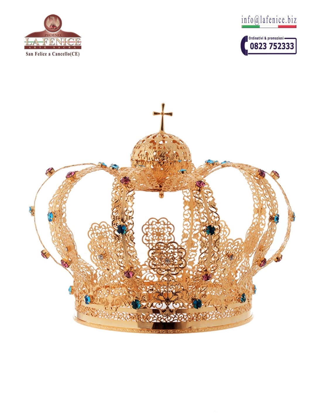 Crown for statue. Made of golden brass. With colored finishing rhinestones.
