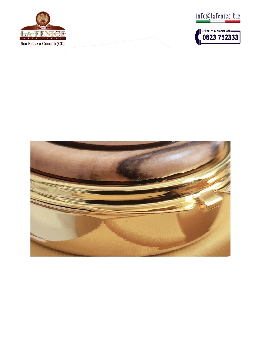 Pyx in gold-plated brass with "Saint Francis" wooden medallon, diameter 5.8 cm - TEC305