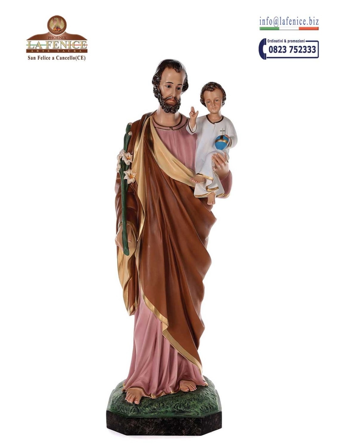 Statue depicting Saint Joseph with Child. Height 100cm. Made of FIBERGLASS. Painted and finished by hand.