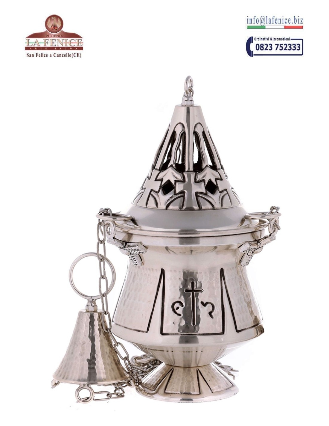 Turibolo e navicella cesellati a mano.