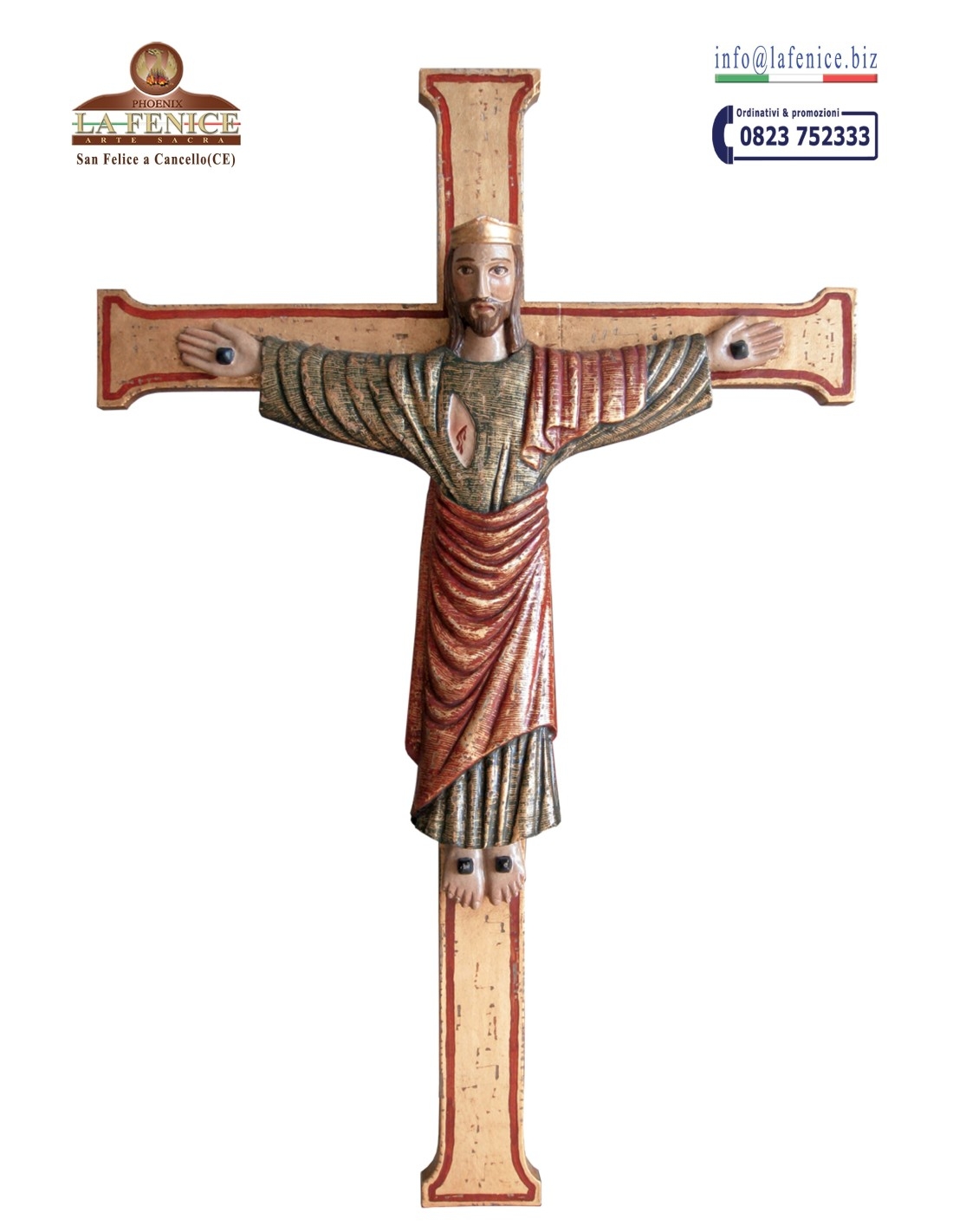 Scopri il nostro crocifisso da cm.96,5 con abito drappeggiato - cfs111, interamente realizzato a mano con materiali di alta qualità. Questo straordinario prodotto presenta dettagli unici, simbolo di eleganza e sacralità. Rifinito con foglia oro.